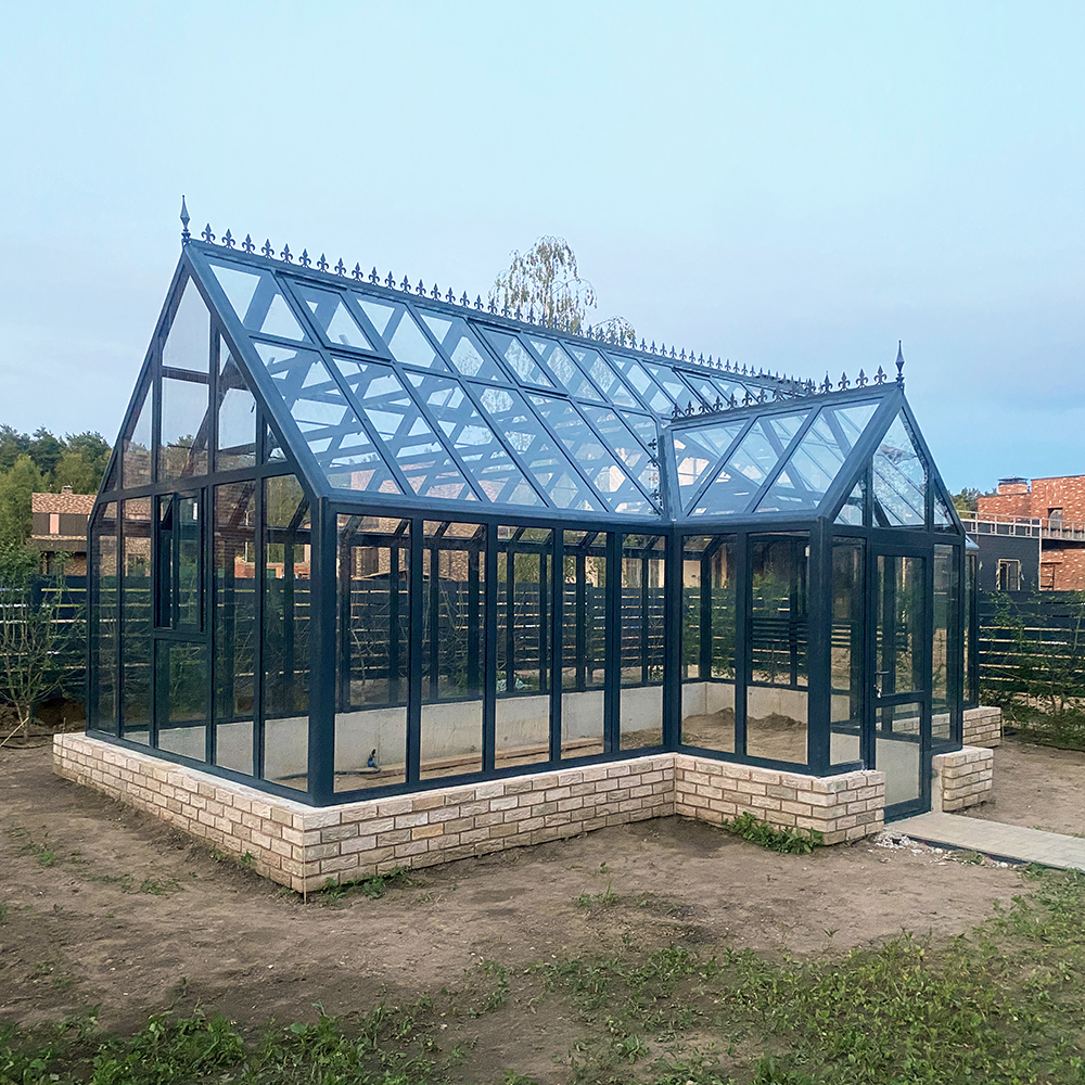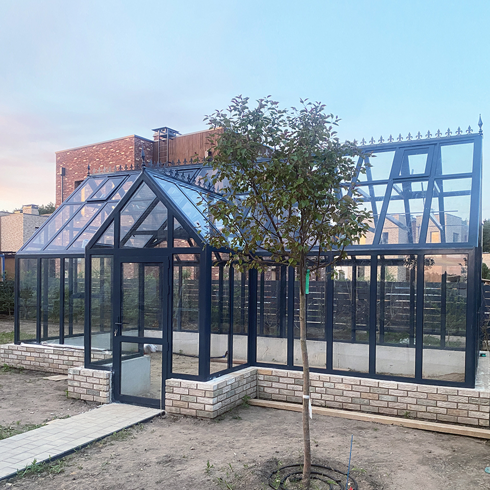 Преимущества стеклянной теплицы с тамбуром заключаются в сочетании функциональности, долговечности, энергоэффективности и эстетики. Тамбур позволяет разместить внутри полки для инвентаря и горшков с рассадой. При входе в теплицу, холодный воздух не попадает сразу в основное помещение, это особенно важно весной и осенью, при резких перепадах температур. Ширина 4 метра позволяет разместить более трех рядов грядок, а значит овощей и зелени можно собрать в несколько раз больше.